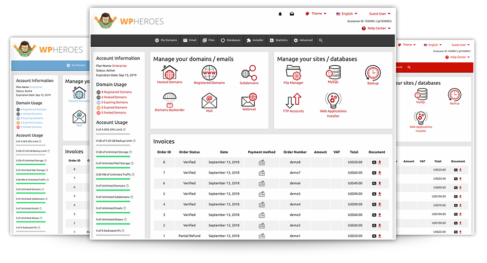 All web hosting plans come bundled with our in-house built Web Hosting Control Panel. It has been designed to be simple and easy to use so that you and your customers can take pleasure in managing your sites and emails. The Control Panel is currently available in a variety of languages, including English, Spanish, French, German, Russian, Vietnamese, Japanese, Simplified Chinese, Traditional Chinese, Dutch and Bulgarian.